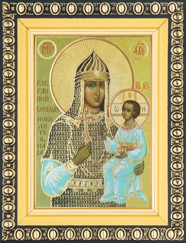 Икона БМ "Взбранной Воеводе Победительная" 6х9 в раме 8х11
