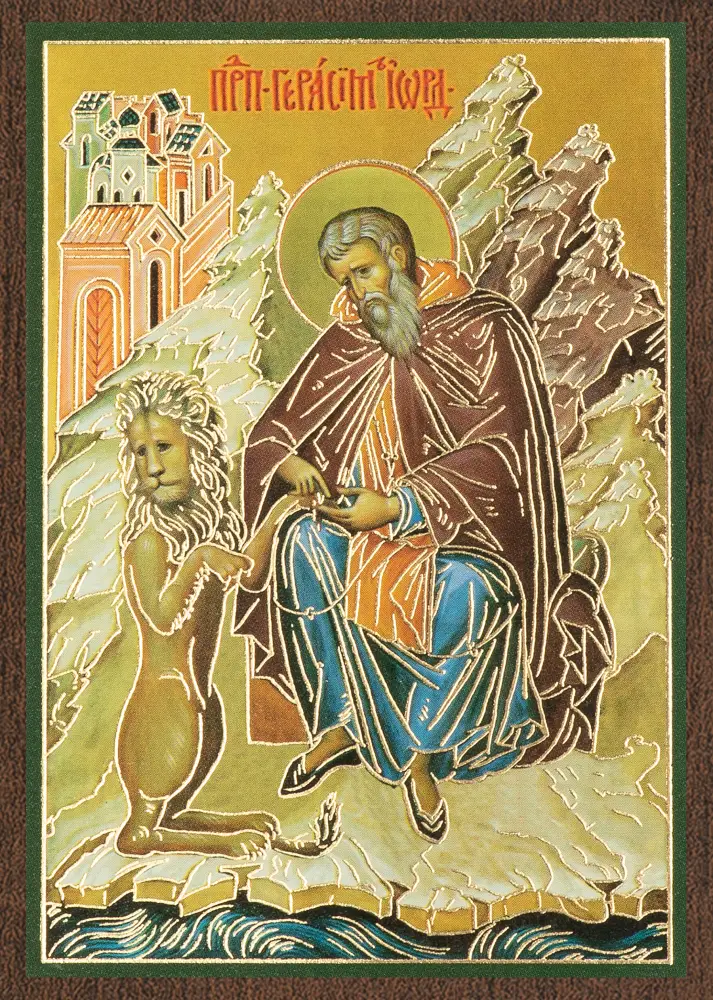 Икона "Герасим Иорданский со львом" 6х9 на МДФ-6