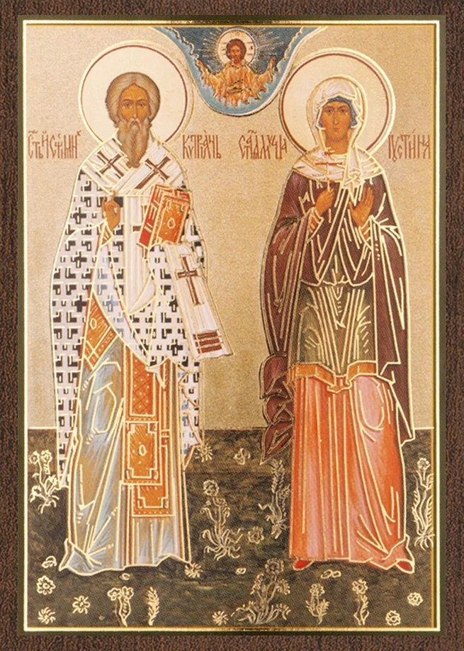 Икона "Киприан и Иустина" 6х9 на МДФ-6