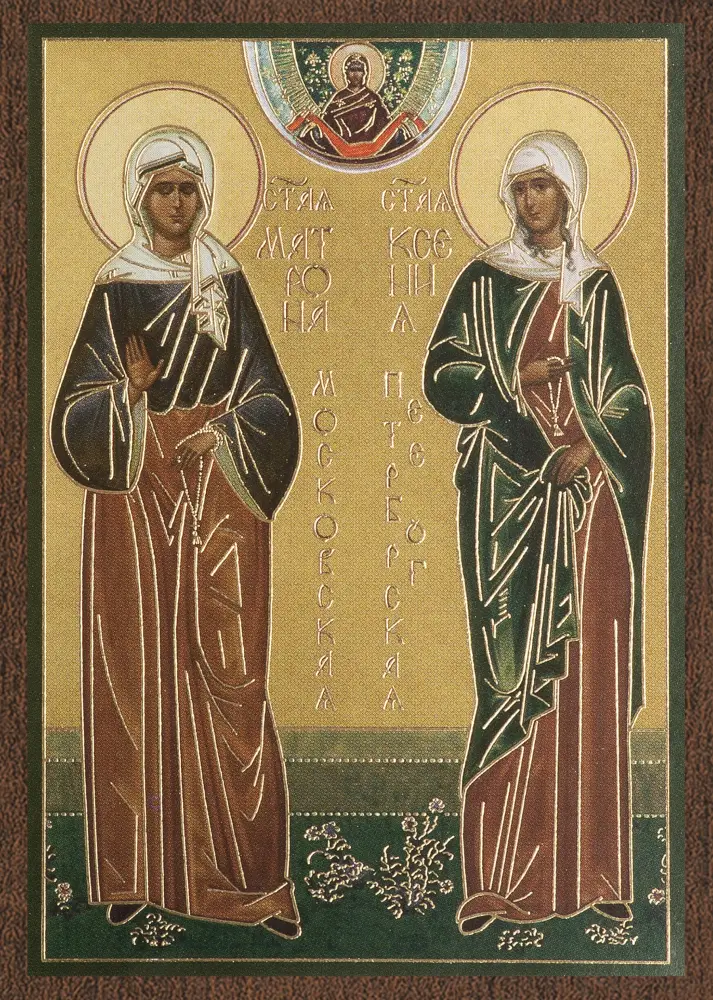 Икона "Ксения Петербургская и Матрона Московская" 6х9 на МДФ-6