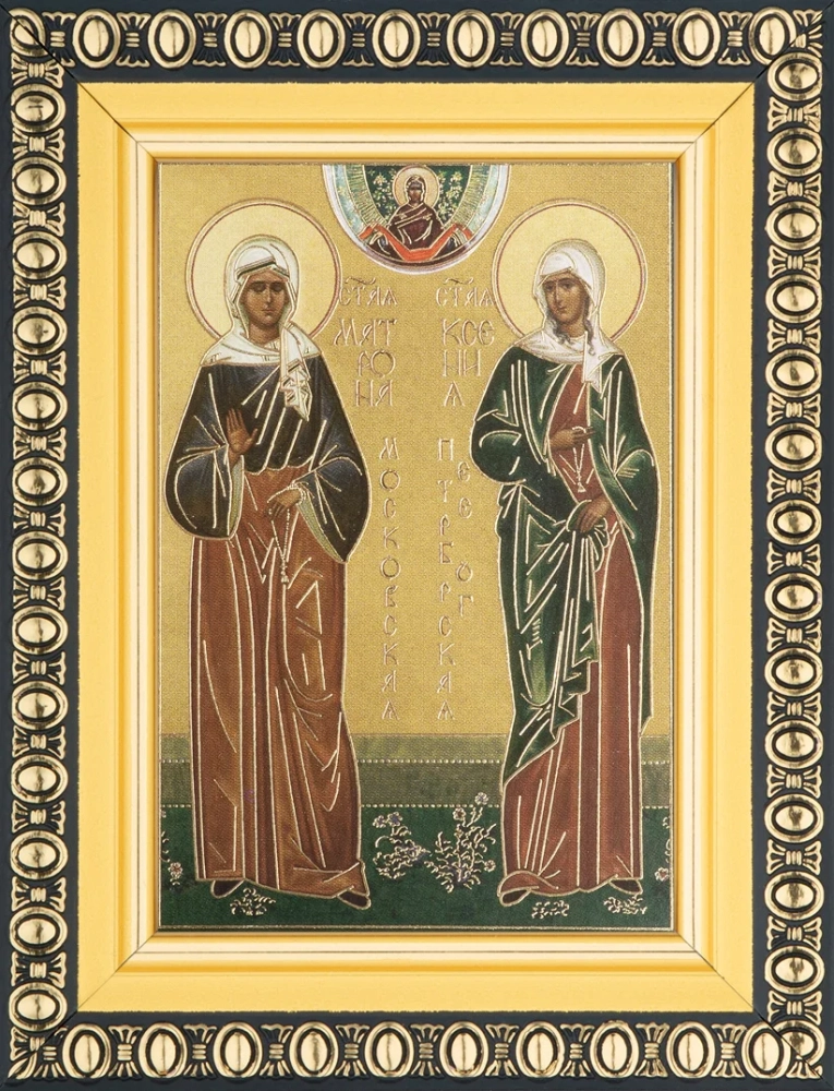 Икона "Ксения Петербургская и Матрона Московская" 6х9 в раме 8х11