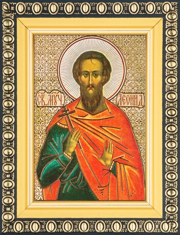 Икона "Леонид Коринфский" 6х9 в раме 8х11