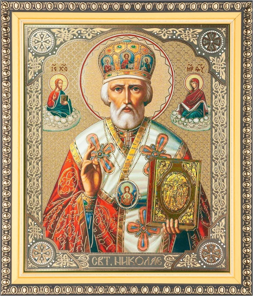 Икона "Николай Чудотворец" (фон зеленый) 15х18 в раме 18х21