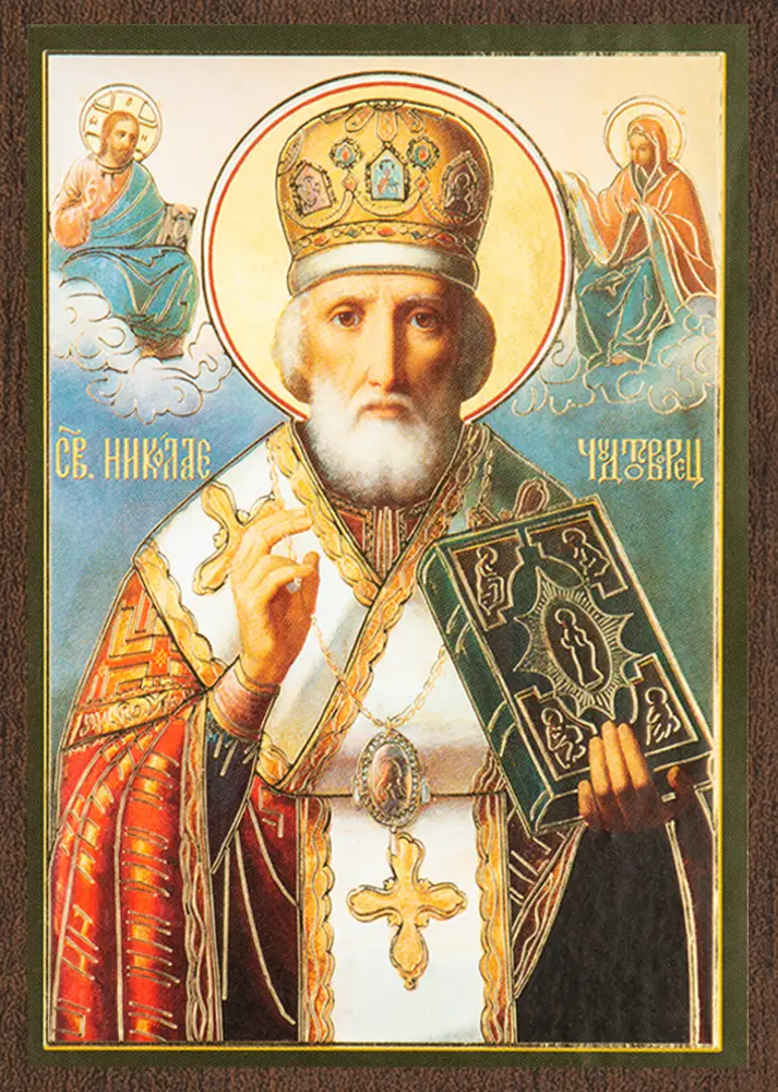 Икона "Николай Чудотворец" в митре, 6х9 на МДФ-6