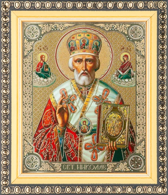 Икона "Николай Чудотворец" в митре, вид 3, 10х12 в раме 13х15