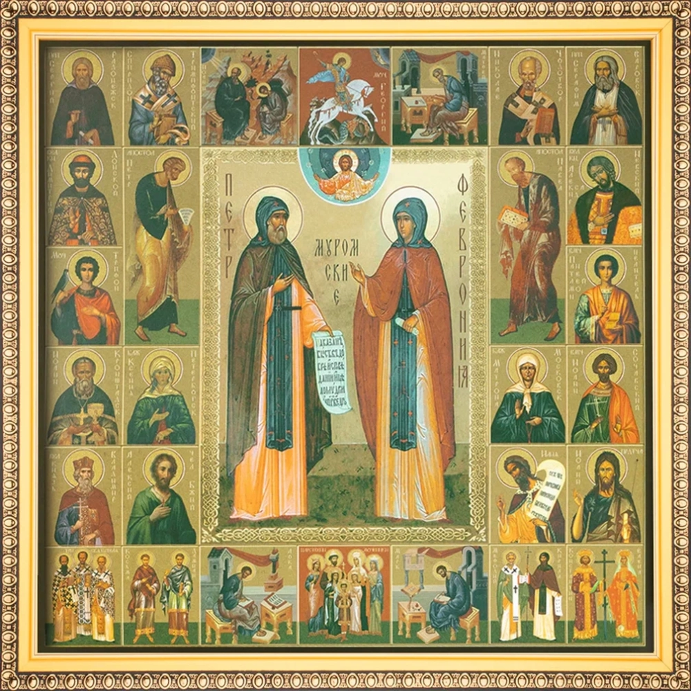 Икона "Петр и Феврония", рама 28х28, в коробке