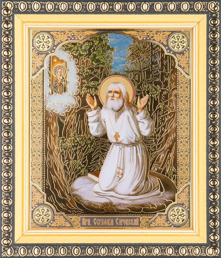 Икона "Серафим Саровский" на камне 10х12 в раме 13х15