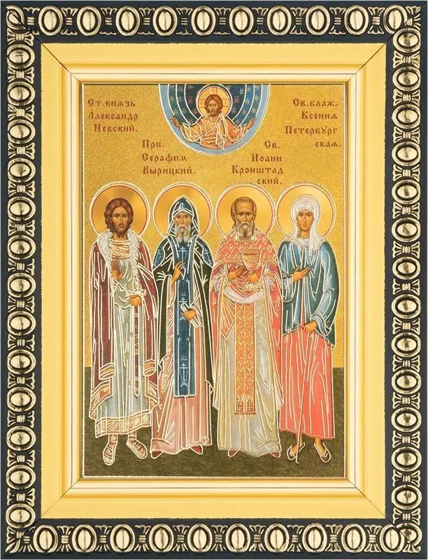 Икона "Собор Петербургских Святых" 6х9 в раме 8х11