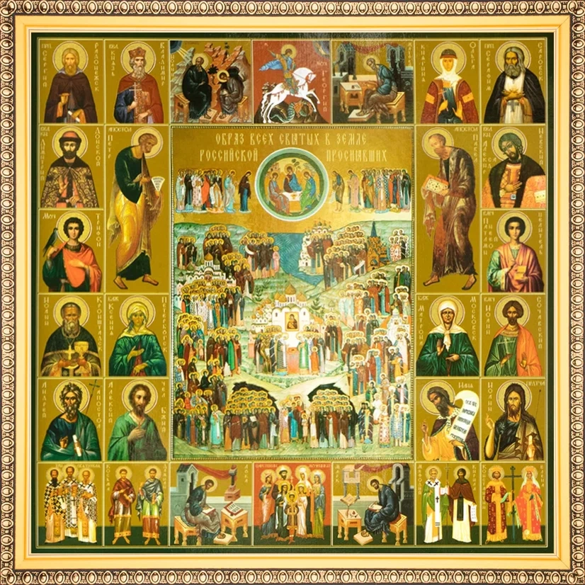 Икона "Собор всех святых земли Русской", рама 28х28, в коробке