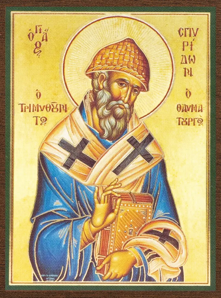 Икона "Спиридон Тримифунтский" 4х6 на МДФ-6