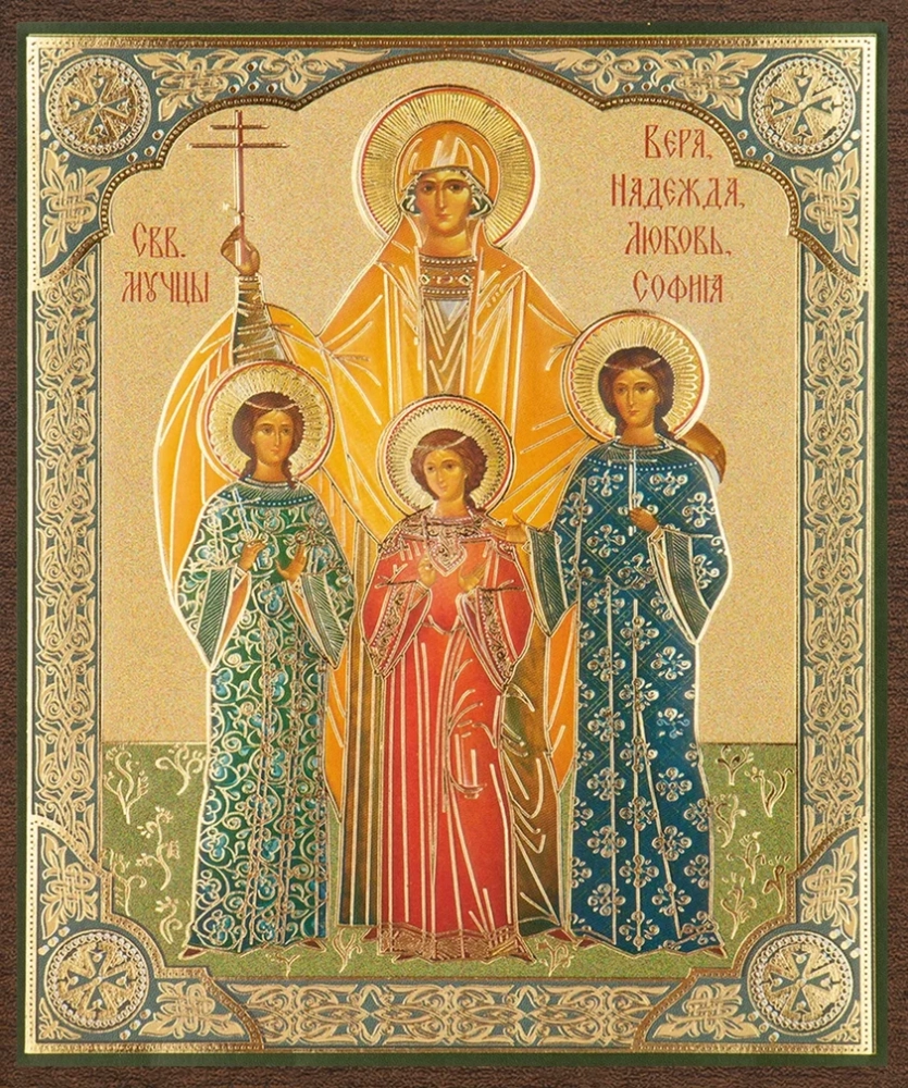 Икона "Вера, Надежда, Любовь и София" 10х12 на МДФ-6