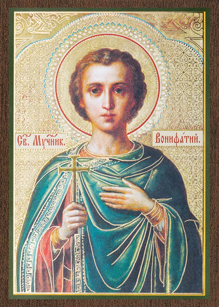 Икона "Вонифатий Тарсийский" 6х9 на МДФ-6