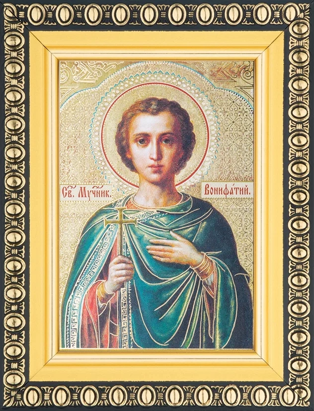 Икона "Вонифатий Тарсийский" 6х9 в раме 8х11