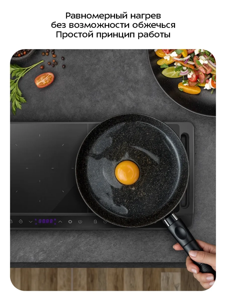 Эта индукционная плита — отличный выбор для тех, кто ценит безопасность, эффективность и современный дизайн. Она станет незаменимым помощником на вашей кухне, обеспечивая чистоту и удобство в приготовлении пищи. Подходит для использования как дома, так и в других помещениях, где требуется надежная и компактная кухонная техника.