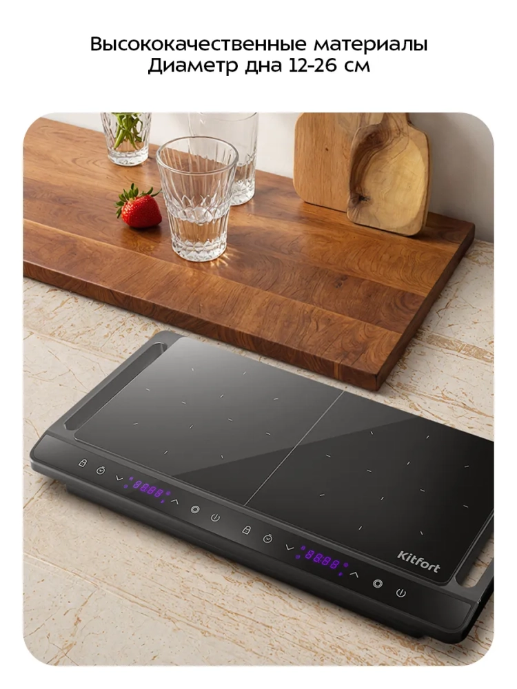 Индукционная плита Kitfort КТ-186 — это современная настольная электрическая плита, идеально подходящая для кухни. Она оснащена двумя конфорками, каждая из которых имеет мощность 1500 Вт, что обеспечивает общую мощность в 3000 Вт. Плита выполнена в стильном пластиковом корпусе с рабочей поверхностью из стеклокерамики, что делает её не только функциональной, но и эстетически привлекательной для любой кухни.