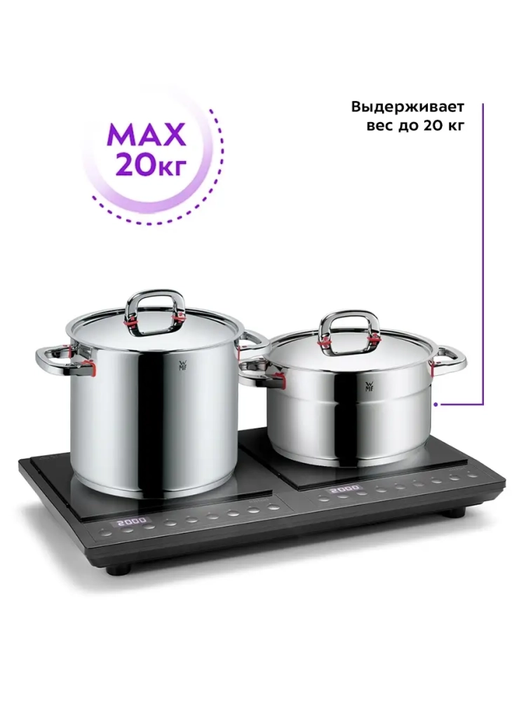 Индукционная плита Kitfort КТ-109 представляет собой один из новых экологически чистых кухонных приборов, разработанных по новейшим европейским, американским и японским технологиям. Индукционная плита имеет очень высокий коэффициент полезного действия (до 94 %), что существенно сокращает затраты на электроэнергию. Плита имеет защиту от перегрева. Для индукционной плиты подходит посуда с дном из ферромагнитных материалов: стальная, чугунная, эмалированная посуда, посуда из нержавеющей стали, а также любая другая, предназначенная для индукционного нагрева (обычно такая посуда имеет специальную маркировку). Рекомендуемый диаметр дна составляет 12-26 см, хотя возможно использовать посуду и других диаметров, вплоть до 5 см. Если посуда не подходит для индукционной плиты или диаметр дна слишком мал, то на дисплее отобразится код ошибки E8, и нагрев осуществляться не будет.Плита КТ-109 выдерживает вес не более 10 кг на каждую конфорку (суммарно не более 20 кг).