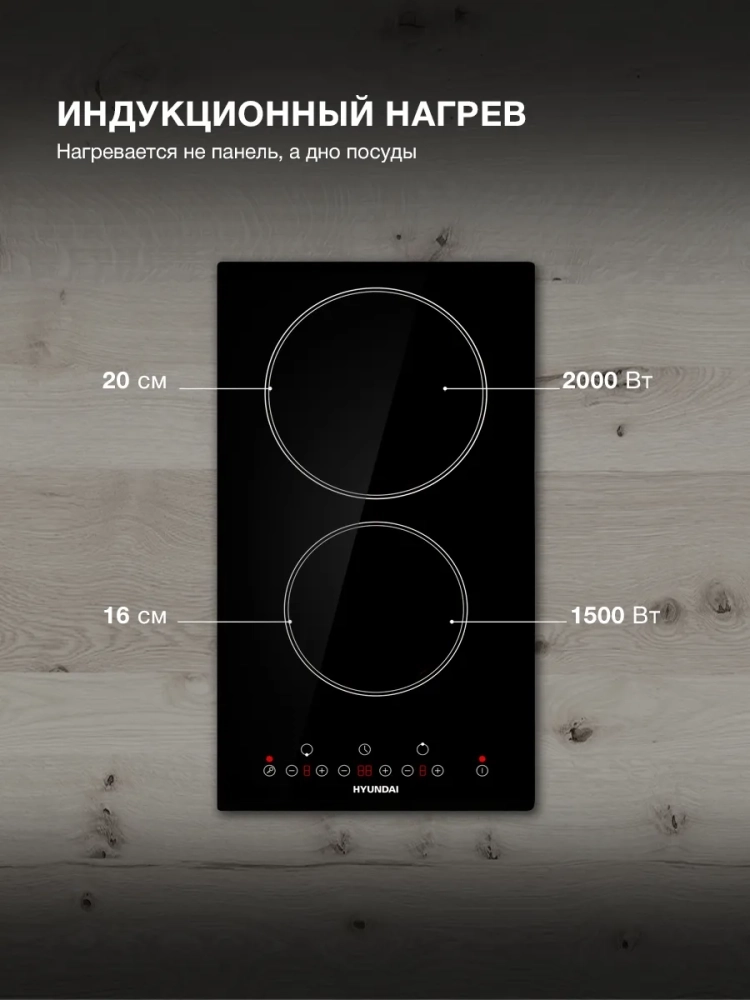 Индукционная варочная поверхность Hyundai HHI 3750 BG черный, независимая установка, материал поверхности стеклокерамика, индукционных конфорок 2