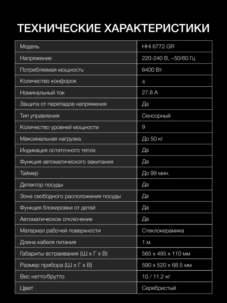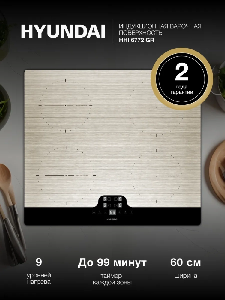 С варочной панелью Hyundai HHI 6772 GR ваш процесс готовки станет ещё более быстрым, удобным и безопасным!