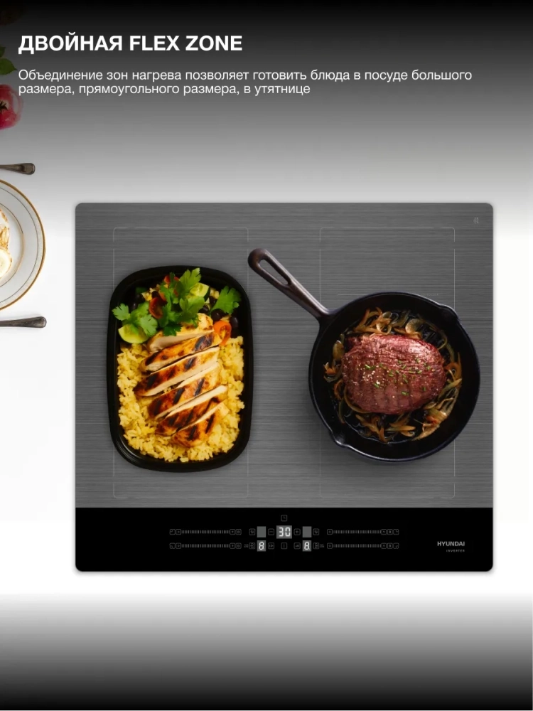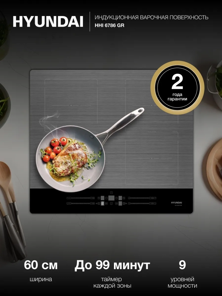 Индукционная варочная поверхность Hyundai HHI 6786 GR темно-серый. функция STOP&GO, функция KEEP WARM