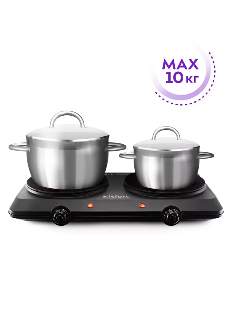 Эта настольная плита идеально подходит для использования в условиях ограниченного пространства, обеспечивая максимальную функциональность и удобство. Электрическая плита Kitfort — это надежный выбор для вашей кухни, который сочетает в себе качество, стиль и инновации.