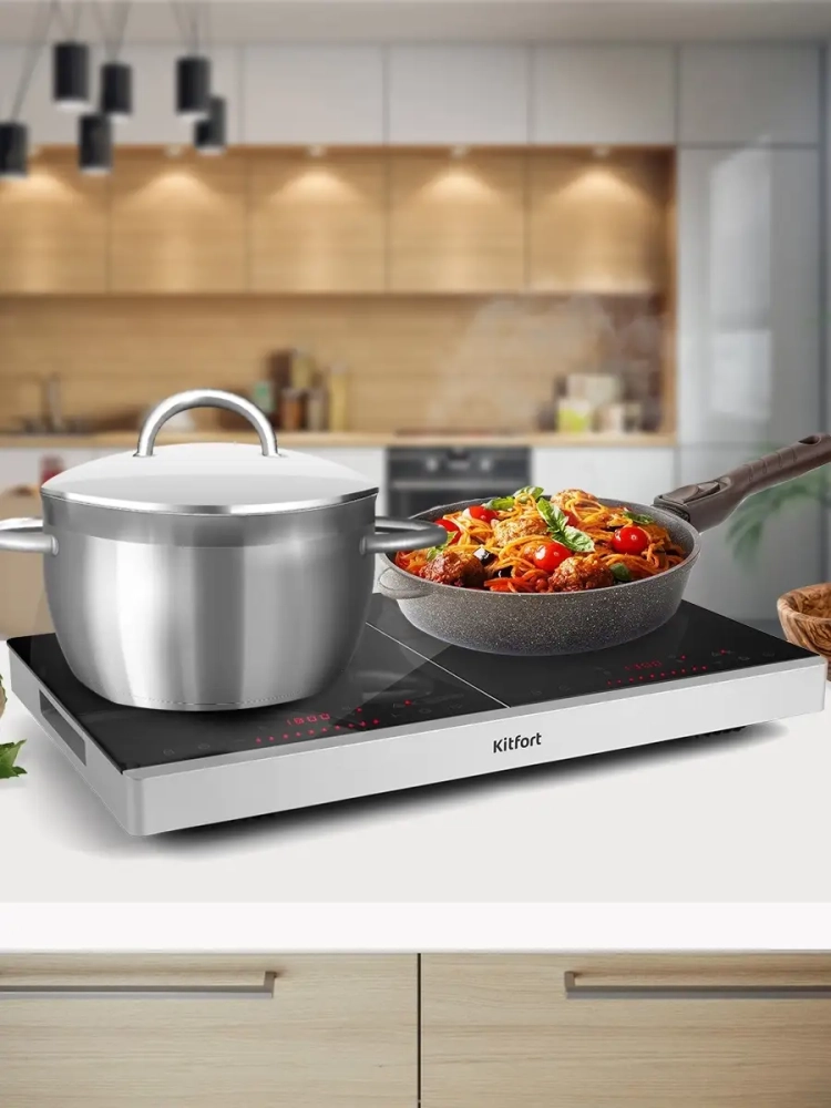 Инфракрасная технология нагрева обеспечивает равномерное распределение тепла по всей поверхности конфорки, что позволяет готовить пищу с минимальными потерями энергии. Настольные индукционные плиты Kitfort — это надежная и долговечная техника, которая станет незаменимым помощником на вашей кухне.