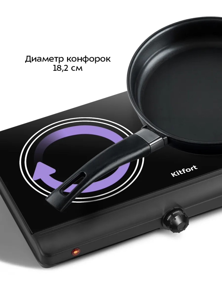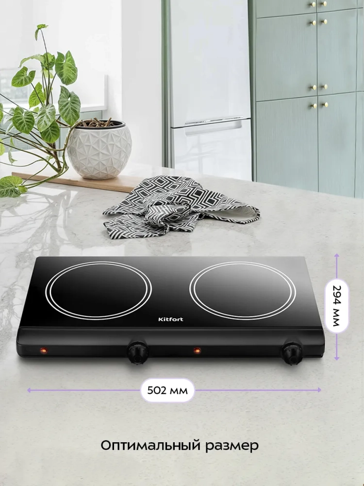 Инфракрасная плита настольная КТ-192 от kitfort — это современная техника, которая станет незаменимым помощником на вашей кухне. Эта электроплита мощностью 2100–2500 Вт выполнена в стильном металлическом корпусе с рабочей поверхностью из стеклокерамики. Плита оснащена инфракрасным излучателем, который обеспечивает равномерное нагревание посуды без прямого контакта с нагревательным элементом, что делает её безопасной и экологичной. Электроплита КТ-192 идеально подходит для приготовления разнообразных блюд на любой посуде, включая тонкие алюминиевые сковороды. Механический термостат позволяет точно контролировать температуру конфорок, исключая необходимость использования вентиляторов и снижая уровень шума во время работы. Инфракрасный излучатель состоит из металлической ленты и способен достигать температуры до 500 °C. Плитка выдерживает перепады напряжения и может работать как при повышенном, так и при пониженном напряжении питания. Однако важно помнить о запрете подключения через тиристорные или импульсные регуляторы напряжения во избежание поломки устройства. Для оптимальной передачи тепла рекомендуется использовать посуду с плоским дном. Электрическая плитка одноконфорочная — это отличный выбор для тех, кто ценит удобство и функциональность в домашней обстановке. Кухонный электро прибор от китфорт не только практичен в использовании дома, но также добавляет стиль вашему интерьеру благодаря своему современному дизайну.