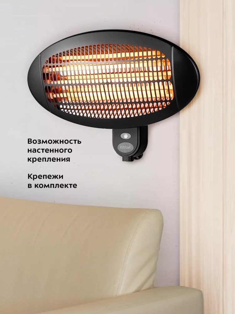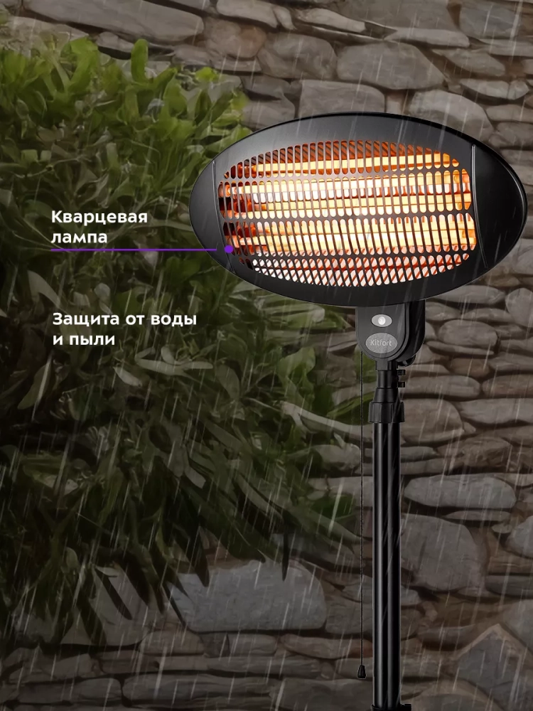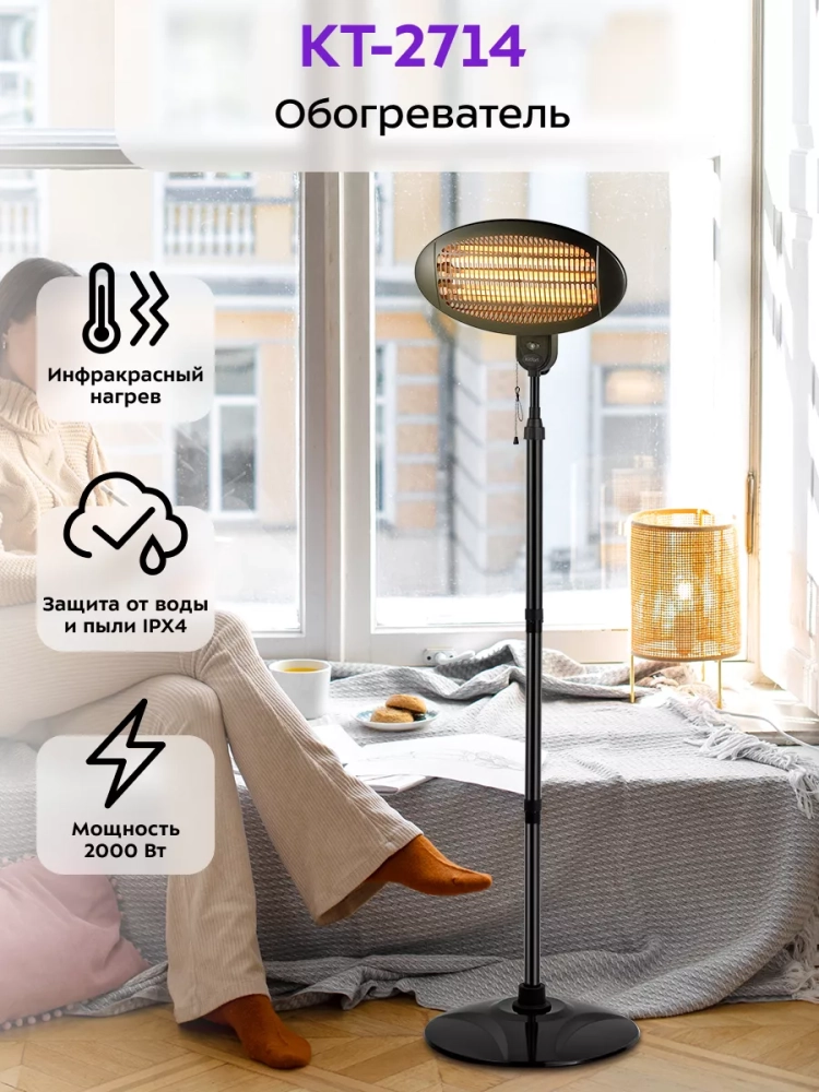 Инфракрасный обогреватель электрический КТ-2714 - 2000 Вт от Kitfort — это идеальное бытовое решение для создания комфортного микроклимата в вашей комнате или офисе. Этот обогреватель для дома отличается высокой эффективностью и простотой использования, что делает его незаменимым помощником в холодное время года. Обогреватель Kitfort KT-2714 предназначен для обогрева воздуха в квартирах, офисах, загородных домах и на верандах. Он оснащен тремя уровнями мощности отопления, что позволяет выбрать оптимальный режим работы в зависимости от ваших потребностей. Это инфракрасный обогреватель подходит как для напольного размещения с помощью стойки с подставкой, так и для настенного крепления на стену благодаря специальным крепежам. Устройство можно использовать как внутри помещений, так и на улице благодаря защите от воды IPX4. Это делает его универсальным решением не только для дома, но и для открытых пространств. Обслуживаемая площадь составляет 15–20 кв.м., однако при хорошей теплоизоляции помещения этот показатель может быть увеличен. Обогреватели Kitfort отличаются надежностью и долговечностью. Модель KT-2714 проста в управлении: достаточно выбрать нужный уровень мощности — и ваш дом или дача наполнится теплом за считанные минуты! Техника для дома должна быть безопасной: именно поэтому данный прибор оснащен защитой от перегрева. Если вы ищете качественный электрический напольный обогреватель или хотите приобрести технику с возможностью настенного монтажа — обратите внимание на эту модель! Она станет отличным выбором как основной источник тепла или дополнительное средство поддержания комфортной температуры.