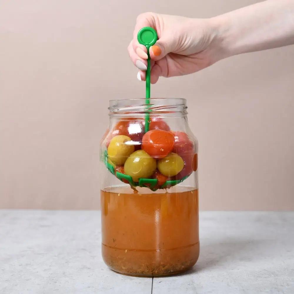 Вставка (ИНСЕРТЕР) предназначена для размещения внутри банки с консервированиями такими как огурцы маленького ( корнишоны) и среднего размера, помидоры «Черри» и «Сливка», других сортов томатов, размером до 3-4 см., а также других овощей для обеспечения удобного процесса извлечения из банки. Инсертер изготовлен из абсолютно безопасного полимерного материала для банок как стандартного консервирования ( метод закручивания), так и твист офф ( под крышку с резьбой) с размерами горловины 82 мм и 100 мм. Инсертер размещается внутри банки в процессе консервирования на этапе стерилизации.