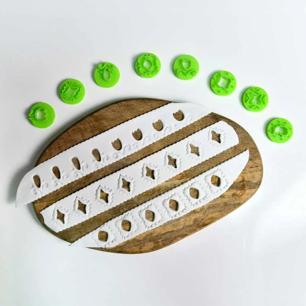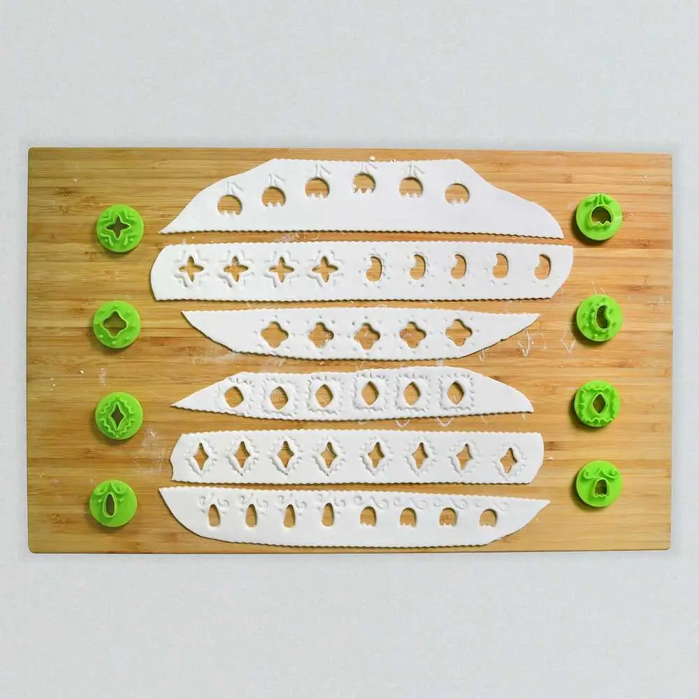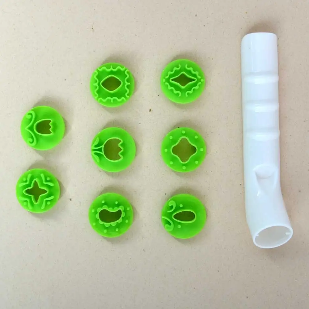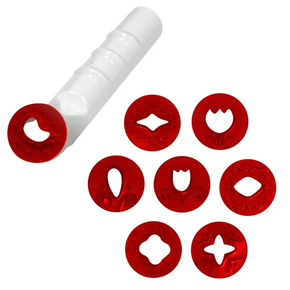 Создайте уникальные десерты с набором инструментов для мастики. Этот комплект включает в себя ручку-держатель и 8 фигурных печатей, которые помогут вам легко и быстро оформлять торты и кондитерские изделия. Печати идеально подходят для создания оригинальных узоров на мастике, а также могут использоваться для оформления десертов из шоколада и марципана. Преимущества данного набора не ограничиваются только выпечкой. Он станет незаменимым аксессуаром на вашей кухне, позволяя вам экспериментировать с различными формами и текстурами. Используйте его для создания уникальных украшений для тортов на дни рождения, свадьбы или другие торжества. Эти печати подойдут для использования в домашних условиях и на профессиональных кухнях. Благодаря разнообразию форм, вы сможете легко создавать уникальные дизайны для любых кондитерских изделий. Набор станет вашим верным помощником в приготовлении сладостей, которые удивят ваших гостей и близких. Перед первым использованием и после каждого применения помыть в тёплой воде, можно с жидким моющим средством, сполоснуть проточной водой и просушить. Можно мыть в посудомоечной машине. Изготовлено из пластмассы (ABS). Размер: диаметр насадок 3,5 см, высота вырубки 6 мм, длина ручки-держателя 15 см.