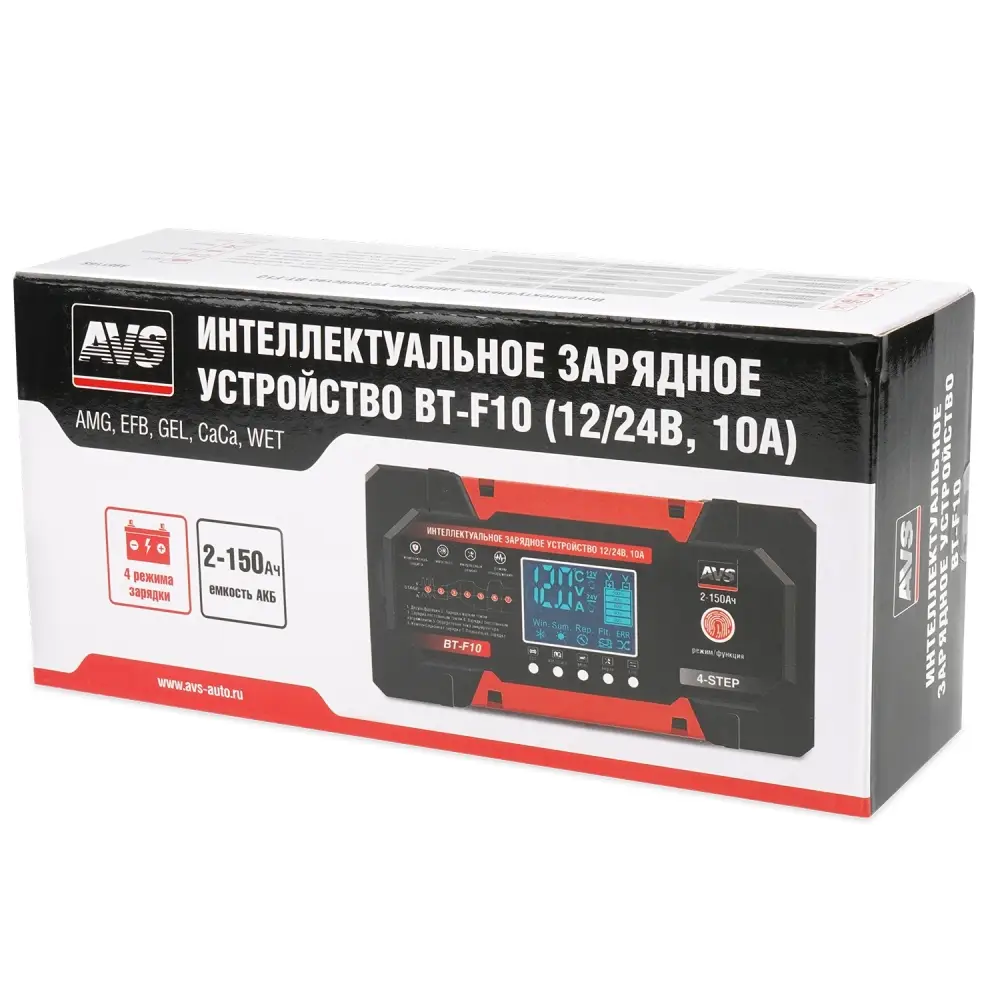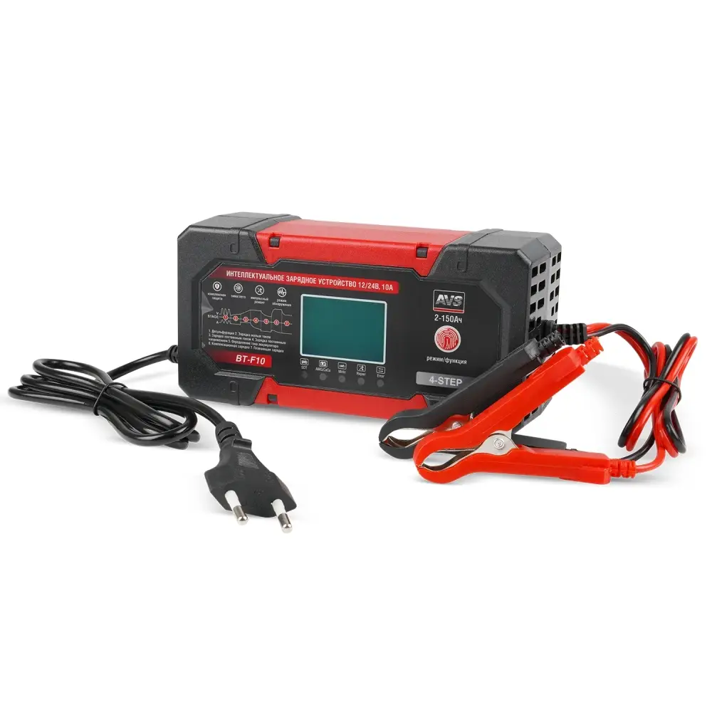 Интеллектуальное зарядное устройство для автомобильного аккумулятора AVS BT-F10 (10A) 12/24V