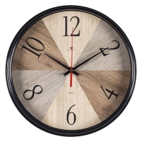 Часы настенные, интерьерные, бесшумные, d-30 см, металл с деревянным основанием