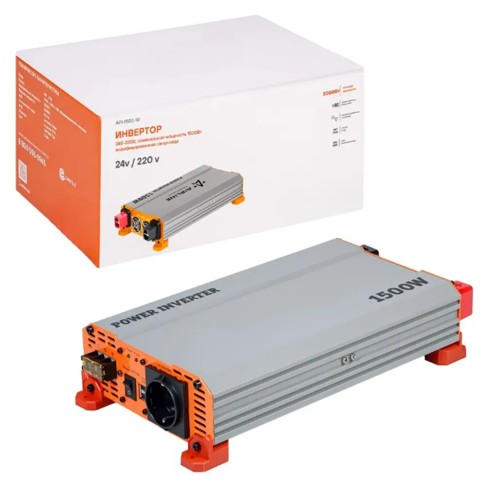 Инвертор автомобильный 24В-220В, 1500 Вт