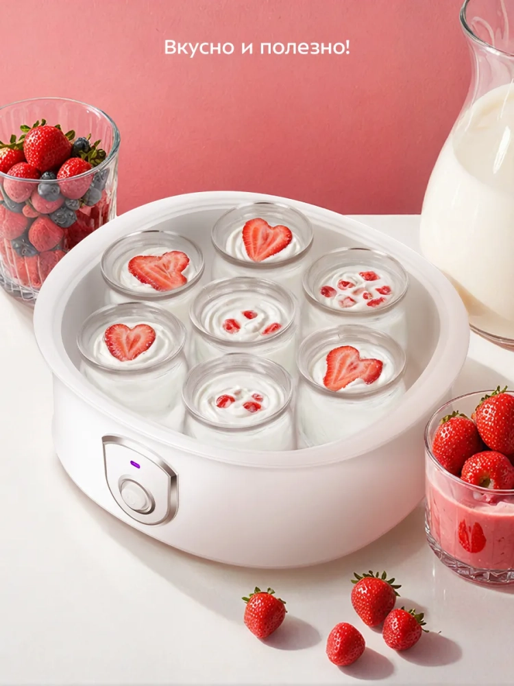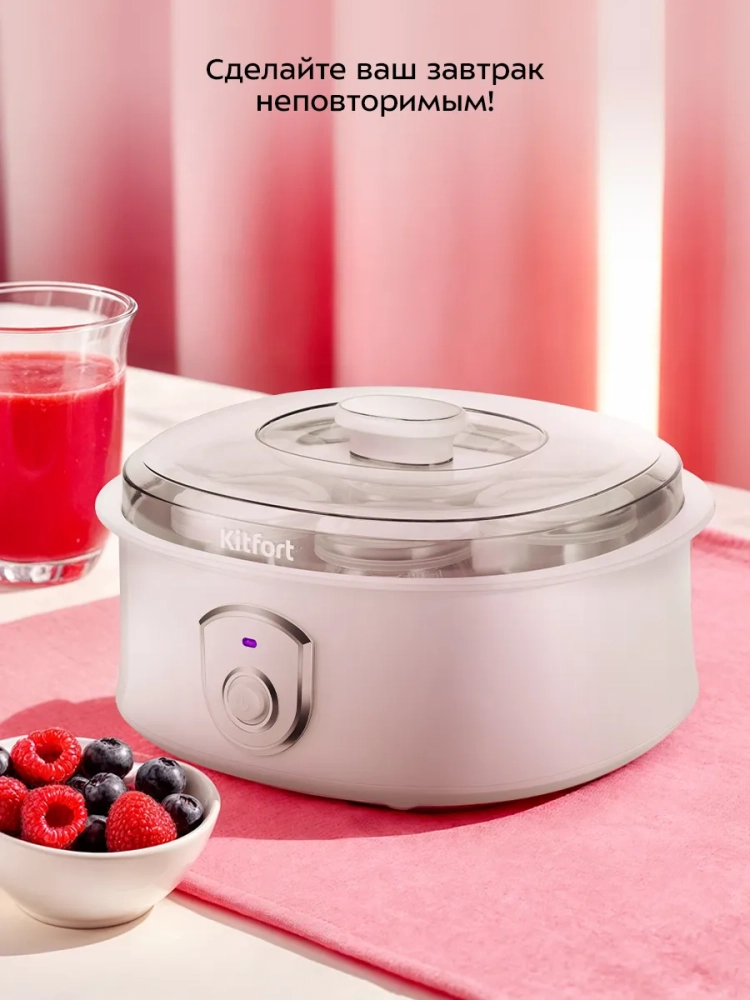 Йогуртница Kitfort КТ-6406 предназначена для приготовления вкусного и полезного домашнего йогурта. В комплекте есть 7 пластиковых баночек емкостью 180 мл каждая. Готовый йогурт можно хранить в холодильнике прямо в баночках. Йогуртница равномерно нагревает баночки с ингредиентами, поддерживая необходимую температуру.