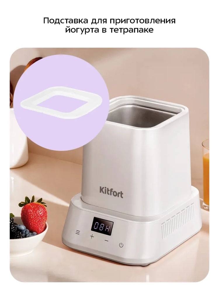 У йогуртницы есть специальная подставка, на которую можно установить крышку йогуртницы — так вы увеличите высоту прибора и сможете готовить йогурт прямо в тетрапаке (упаковке для молока).