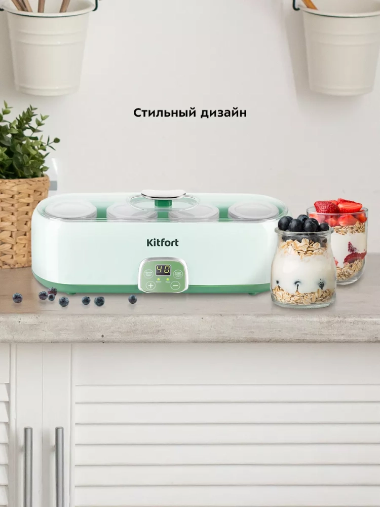 Йогуртница Kitfort КТ-6039 — это превосходное многофункциональное решение для тех, кто ценит домашний йогурт. Эта кухонная техника с электронным управлением позволяет легко приготовить вкусный и полезный продукт в домашних условиях. Компактная овальная форма устройства вмещает четыре стеклянные баночки, что делает хранение готового йогурта удобным и практичным. Баночка из стекла обеспечивает безопасное хранение продукта, а крышка плотно закрывает её, предотвращая попадание посторонних запахов. Электрическая йогуртница равномерно нагревает банки с ингредиентами, поддерживая оптимальную температуру для приготовления. Панель управления бытового прибора позволяет установить время и температуру приготовления с помощью таймера и других средств, а светодиодный дисплей гаджета отображает все настройки процесса. По окончании приготовления раздаётся звуковой сигнал, оповещающий о готовности вашего йогурта. Процесс создания домашнего лакомства прост: смешайте молоко и закваску для йогурта — через некоторое время вы получите замечательный живой продукт, мягкий как хлопок! Йогуртница Kitfort КТ-6039 станет незаменимым помощником на вашей кухне благодаря своей функциональности и простоте использования. Эта электро техника не только облегчает процесс создания натурального продукта без консервантов и добавок, но также экономит ваше время благодаря автоматизации процесса. Хранение приготовленного йогурта в холодильнике возможно прямо в баночках из комплекта. Kitfort КТ-6039 — это надежность от проверенного производителя техники для кухни Китфорт. Пробиотик можно добавить по желанию для улучшения вкуса или пользы вашей смеси.