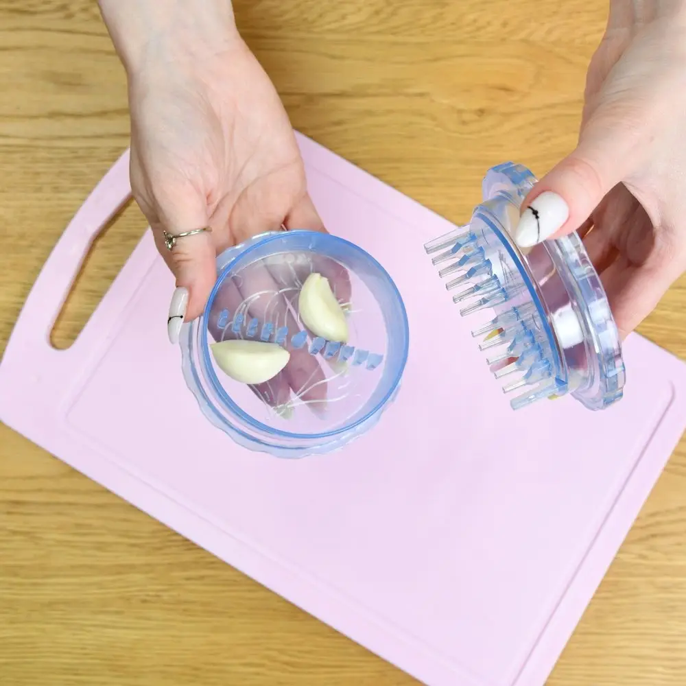 Компактный измельчитель для специй поможет вам в приготовлении множества блюд! Приспособление используется для измельчения чеснока, оставит ваши руки чистыми, сделает чесночный запах менее резким. Положите зубчики чеснока в чашу, закройте крышкой и начинайте вращать крышку и корпус в противоположном друг к другу направлении. Прозрачная емкость позволяет видеть содержимое внутри и контролировать процесс обработки продуктов. Изделие также подойдет для измельчения орехов. После применения рекомендуется промыть с использованием жидких моющих средств. Изготовлено из пластмассы (полистирол).