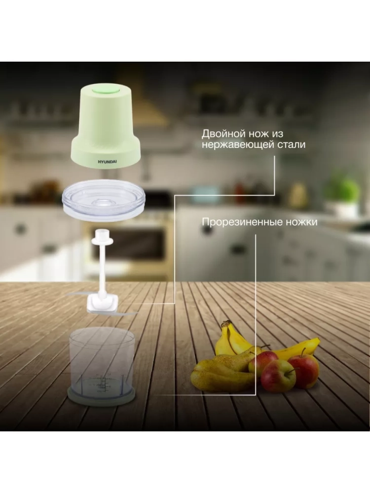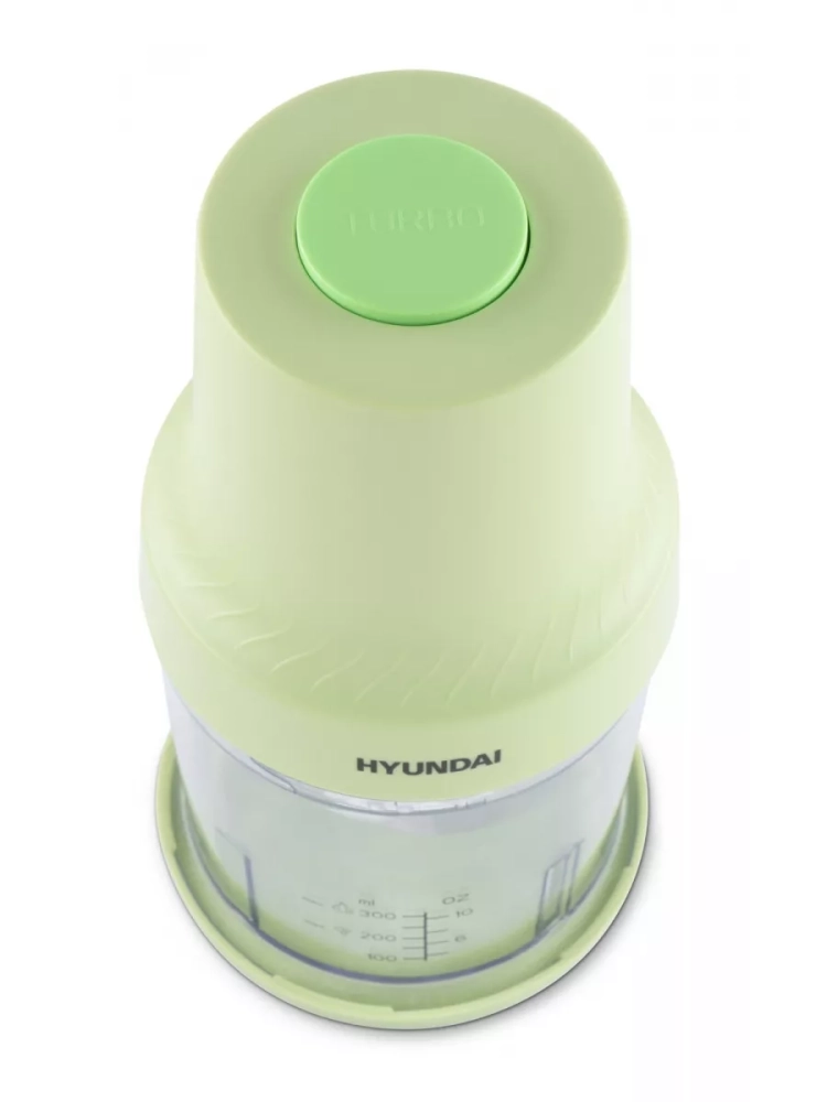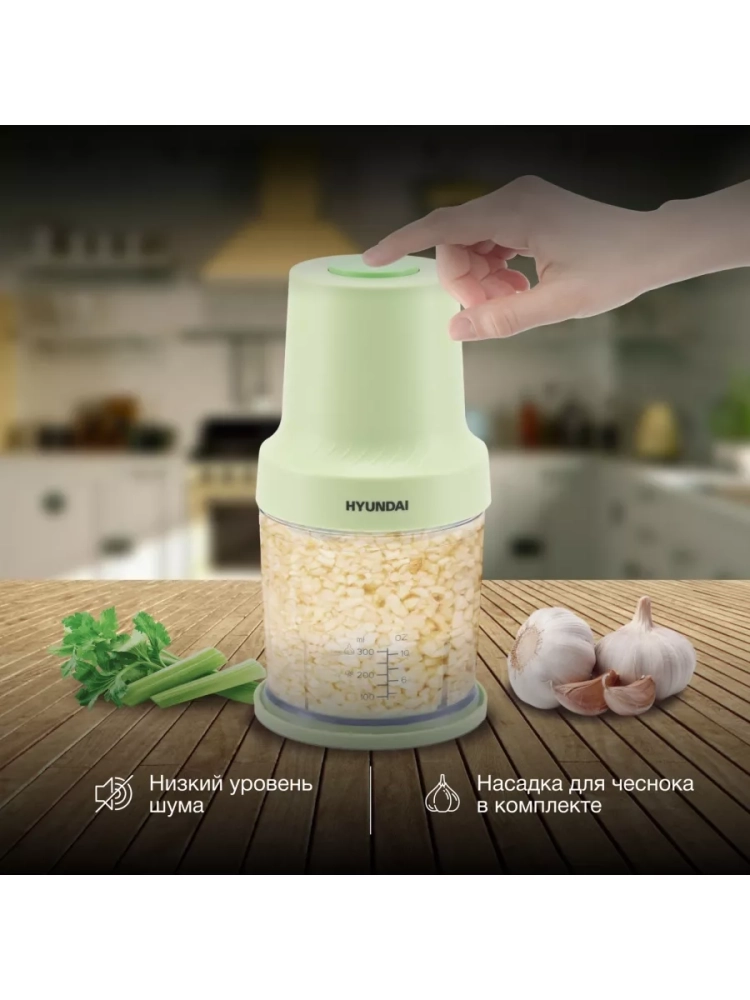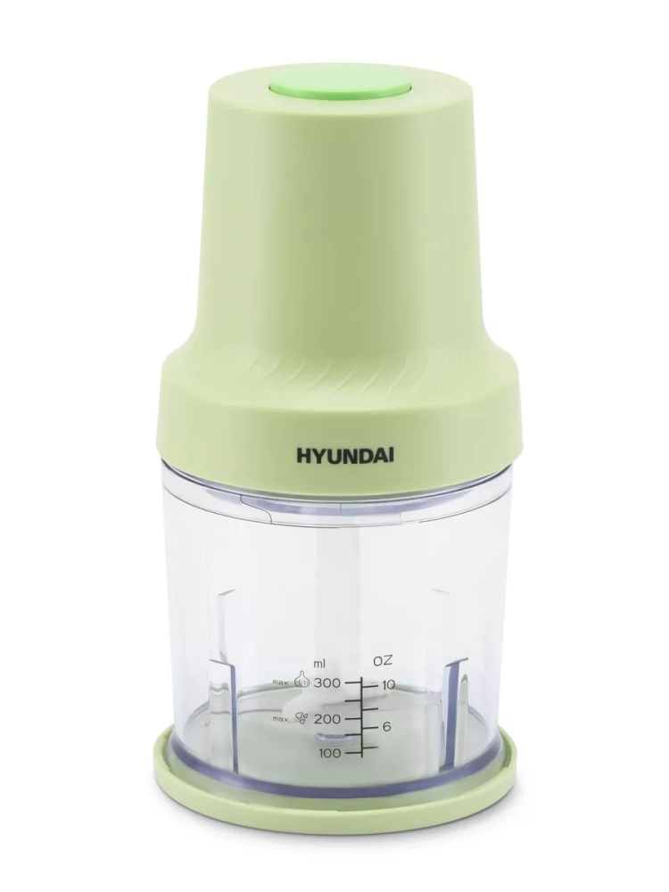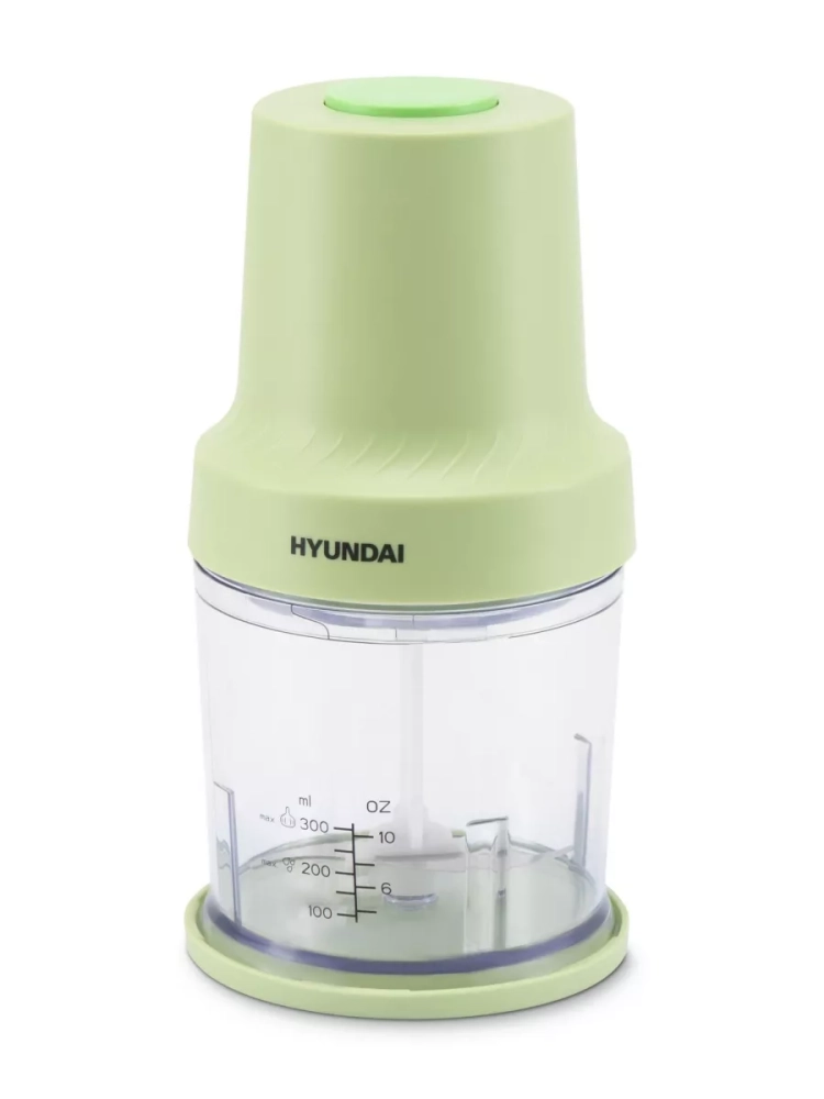 Измельчитель электрический Hyundai HYC-P3128 салатовый/белый, мощность 350Вт, объем чаши 0.8л., насадка для очистки чеснока. Импульсный режим