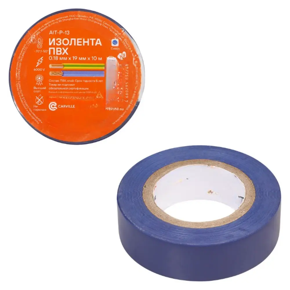Изолента ПВХ, синяя, 19 мм*10 м