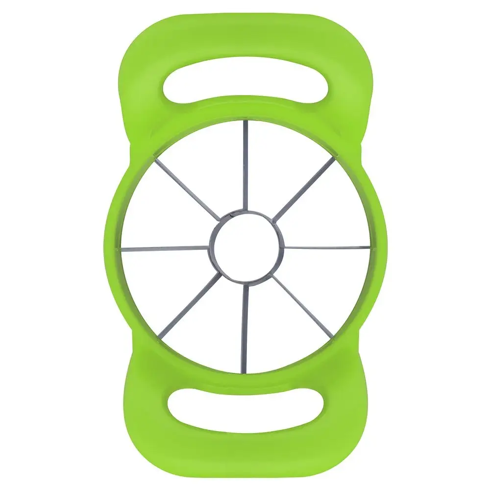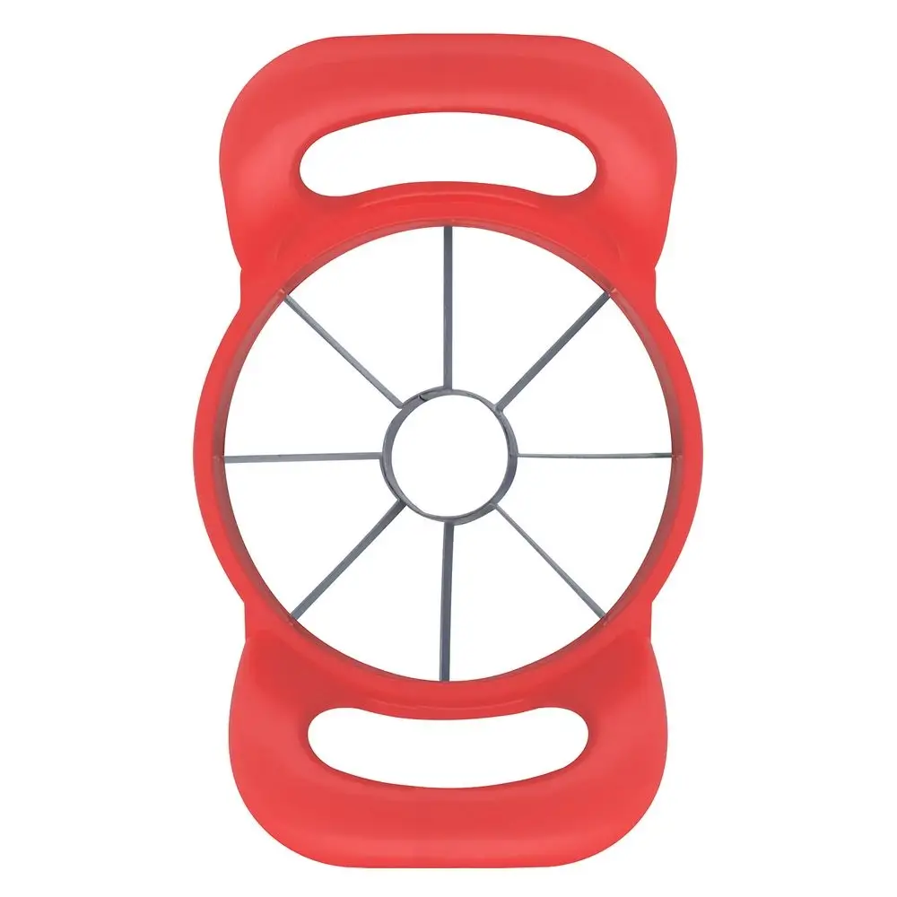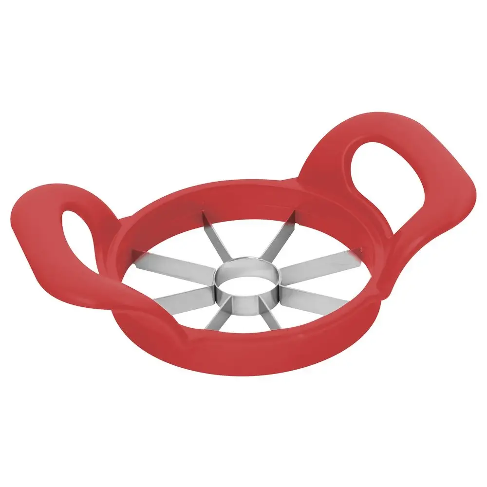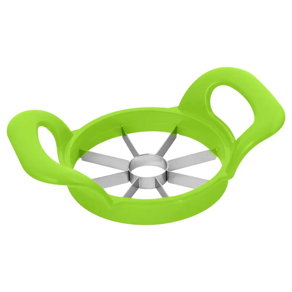 Универсальная яблокорезка предназначена для быстрой и удобной нарезки яблок и удаления сердцевины. Всего одним нажатием вы разрежете фрукт на ровные дольки, отделив при этом сердцевину. Очень удобный инструмент для нарезания яблок для подачи на стол, для угощения детей или на заготовки. Поставьте яблоко на горизонтальную поверхность, прижмите инструмент так, чтобы центр оказался в области сердцевины. С усилием надавите и ваши дольки готовы! После использования промойте инструмент в проточной воде с жидкими моющими средствами. Храните в сухом месте. Изготовлено: рабочая часть из коррозионностойкой (нержавеющей) стали, корпус из пластмассы (ABS).