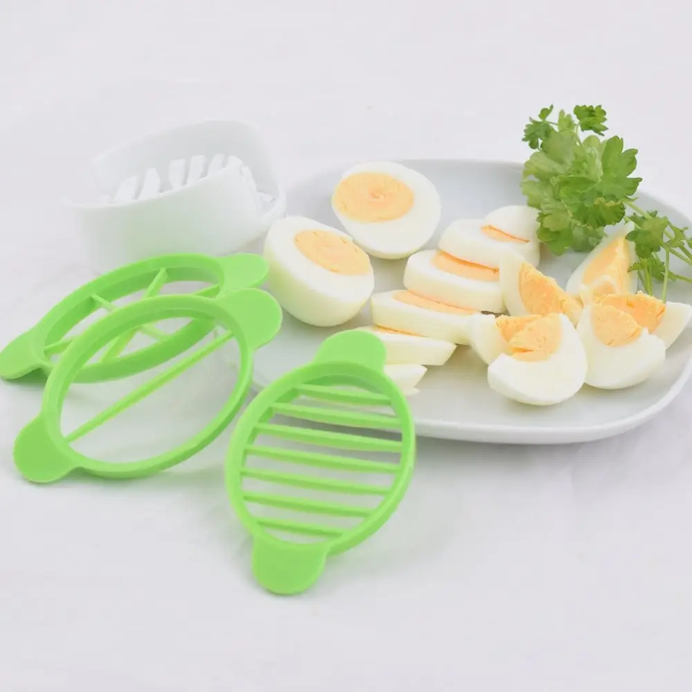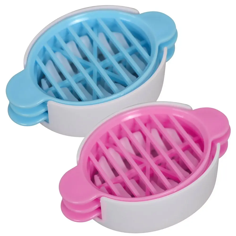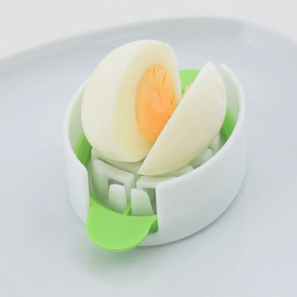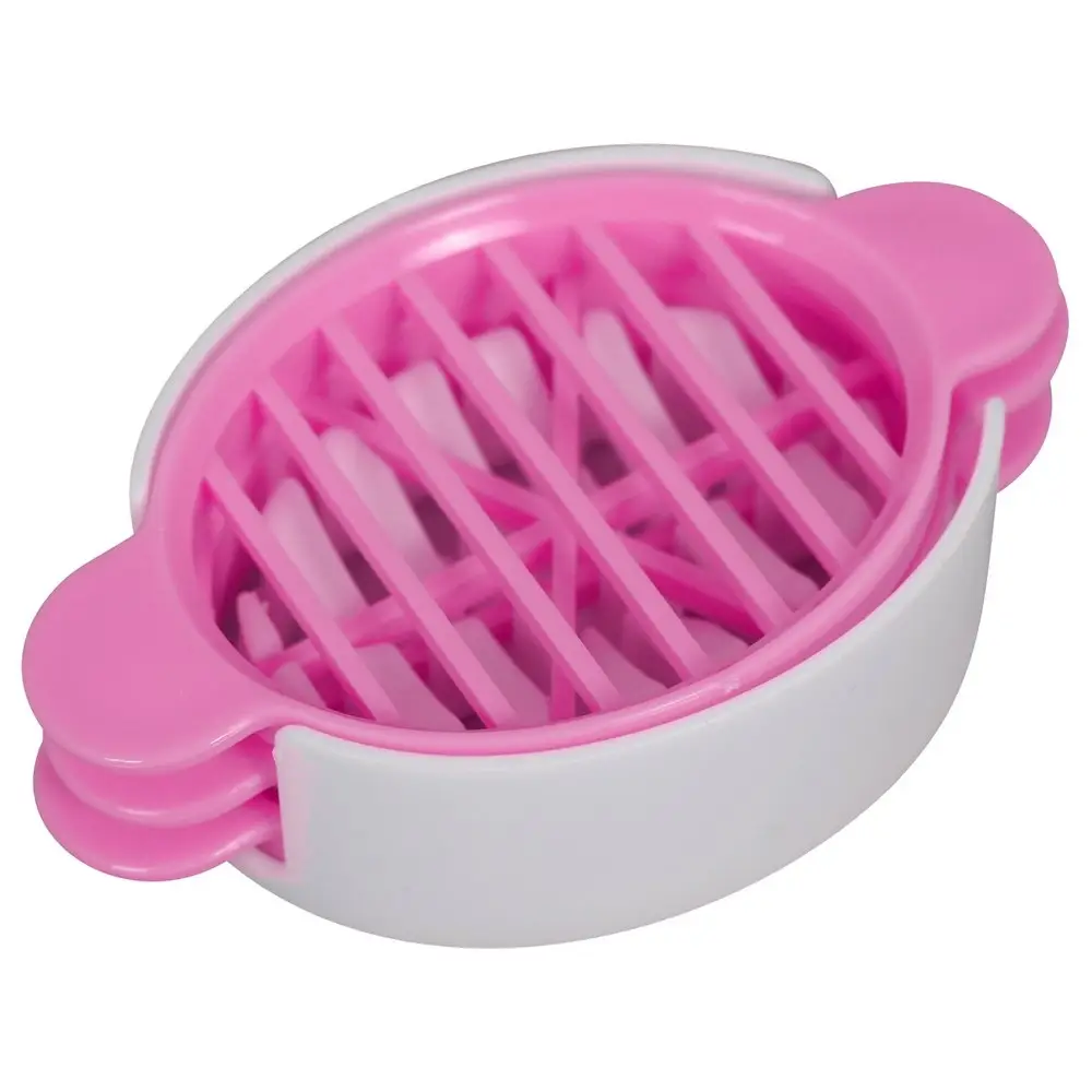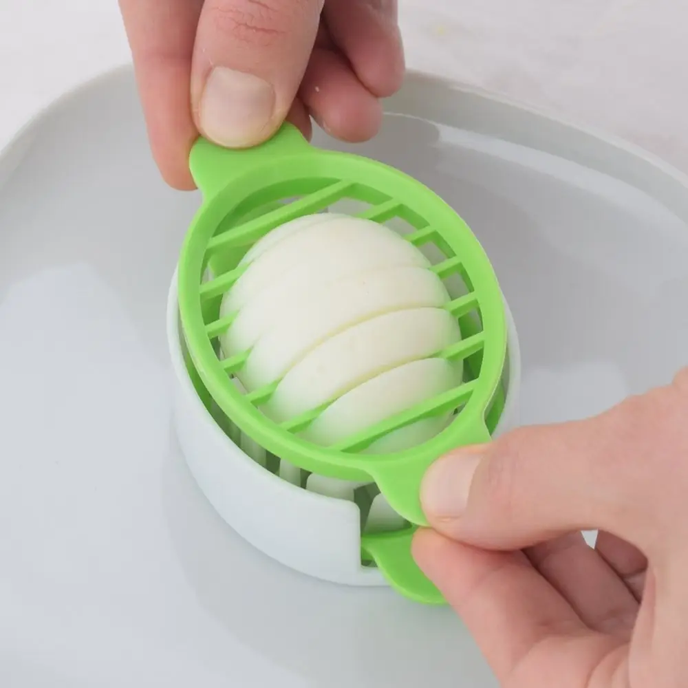 Яйцерезка позволяет аккуратно нарезать яйцо пололам, на дольки или ломтики. Проста в использовании. Разместите яйцо на подставке, выберите насадку и разрежьте яйцо. Подходит также для разрезания мягких фруктов и овощей небольшого размера. После использования промойте яйцерезку под проточной водой, можно с использованием жидких моющих средств. Изготовлено из пластмассы (ABS).