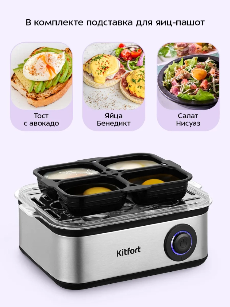 Форма устройства также способствует легкой очистке после использования. Все съемные части можно мыть в посудомоечной машине, что упрощает уход за прибором. Яйцеварка Kitfort — это надежный помощник на кухне, который гарантирует идеальный результат каждый раз.
