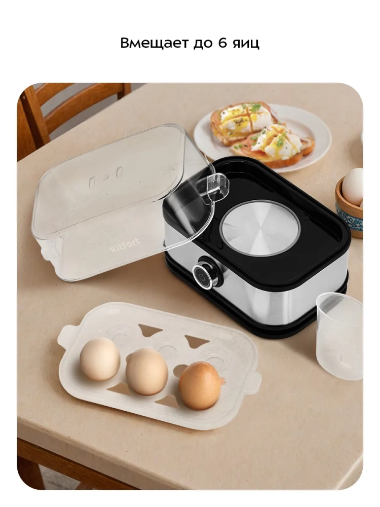 Яйцеварка kitfort КТ-6936 предназначена для варки яиц на пару. Вареные яйца — неотъемлемый элемент вкусного, полезного, а самое главное, простого завтрака. Иногда в утренней спешке не получается аккуратно положить яйца в кастрюлю с водой или вода слишком горячая, и яйца бьются друг о друга.