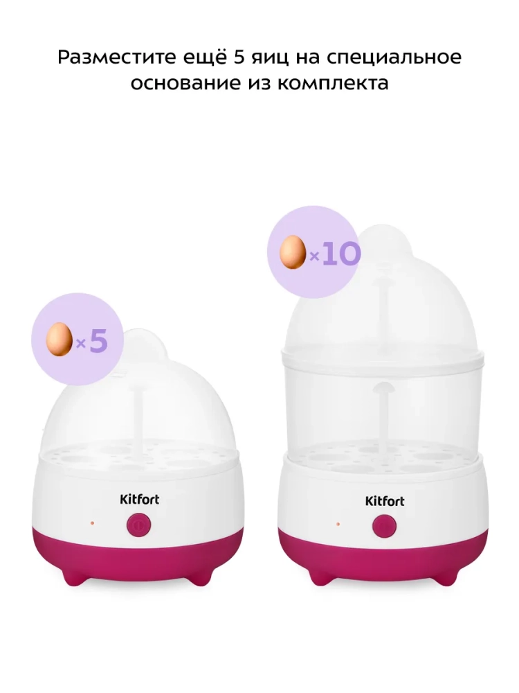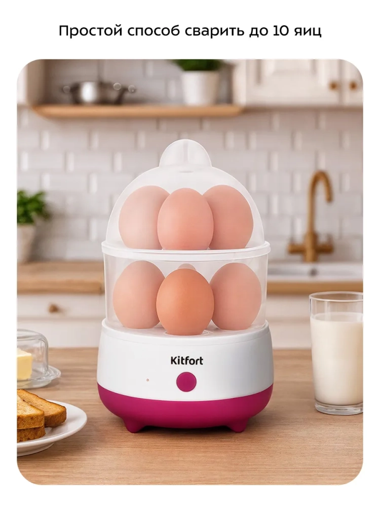 Электрическая автоматическая яйцеварка Kitfort КТ-6959 — это идеальный кухонный электро прибор для вашего дома, который упрощает процесс приготовления яиц. Этот бытовой электроагрегат предназначен для варки яиц на пару, что делает его незаменимым помощником на кухне. Вареные яйца — это не только вкусный и полезный завтрак, но и простое блюдо, которое можно приготовить без лишних хлопот. Преимущества использования этой пароварки очевидны: яйца не соприкасаются друг с другом во время приготовления, благодаря чему они остаются целыми и не растекаются. Паровой метод готовки обеспечивает равномерное приготовление яиц без впитывания воды через скорлупу, что придает им более нежный вкус. Яйцеварка оснащена двумя уровнями для варки до 10 яиц одновременно (по 5 на каждом уровне), что позволяет быстро приготовить завтрак для всей семьи.