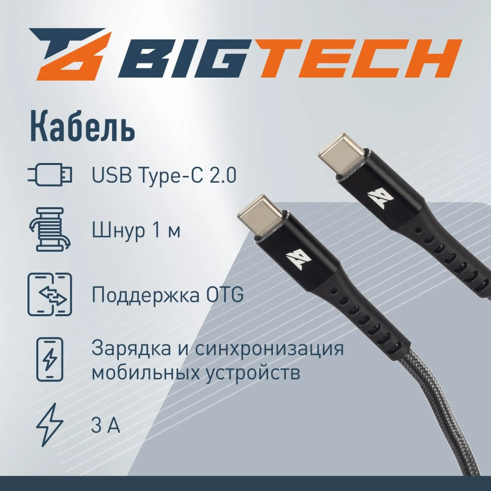 Кабель 60W, 3A, 1м, Type-C to Type-C, нейл, черный BT-JCBL-010/U210CC