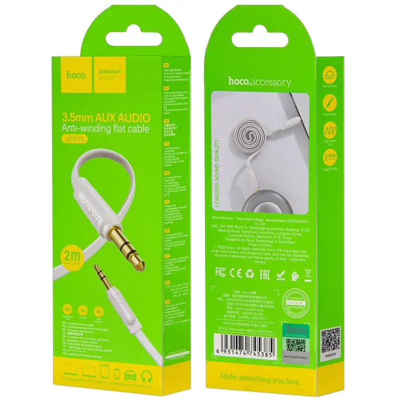 Кабель AUX 2M UPA16 HOCO белый