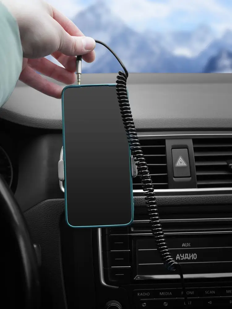 Кабель для подключения смартфона к разъёму AUX в автомобиле или других носителей AUX, для прослушивания музыки. Кабель имеет разъёмы 3.5 mm Jack с обоих концов. Витой провод не путается и занимает мало места.
