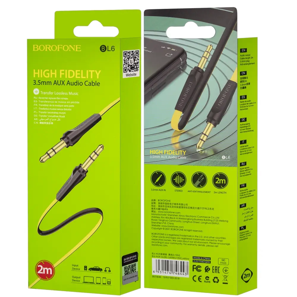 Кабель AUX BL6 2M Borofone черно-желтый