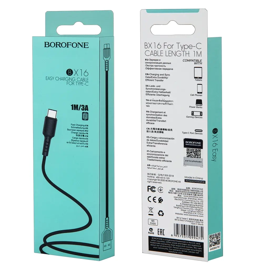 Кабель BX16 USB Type-C 1M Borofone черный