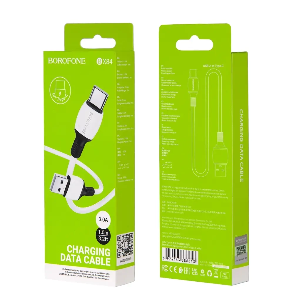 Кабель BX84 USB Type-C 1M 3A Borofone белый