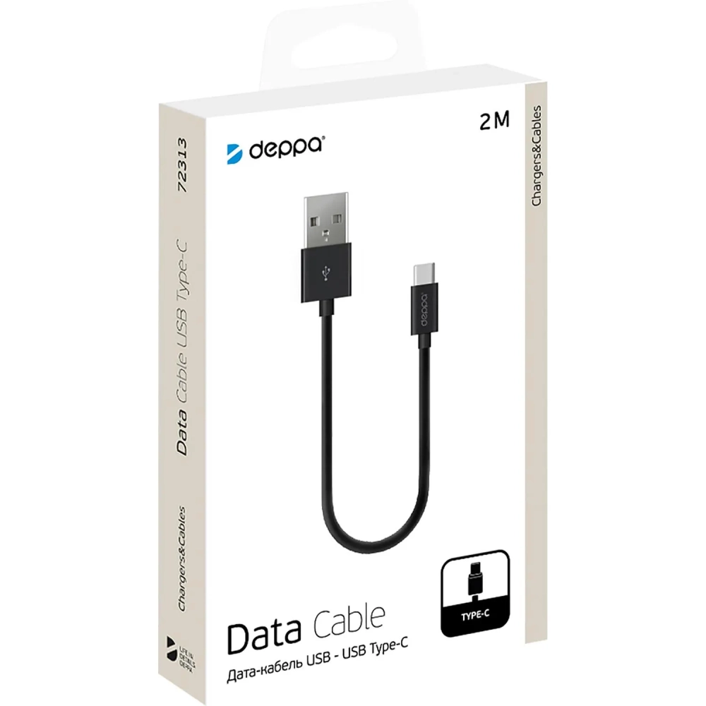 Кабель Deppa USB-A - USB-C, USB 2.0, 2.4A, 2м, черный